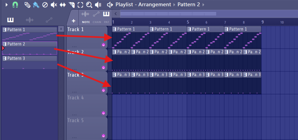 FL Studioでは、短い小節数のループを作ってから全体の構成を作っていきます。
