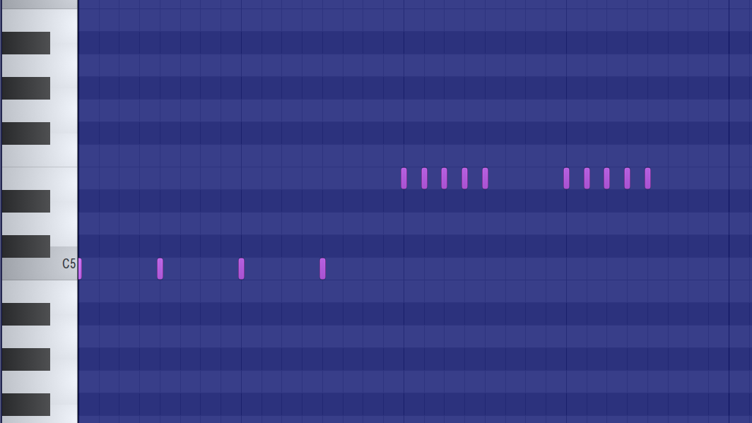 サンプラーを使えばピアノロール上でピッチを変えて打ち込むことができます。