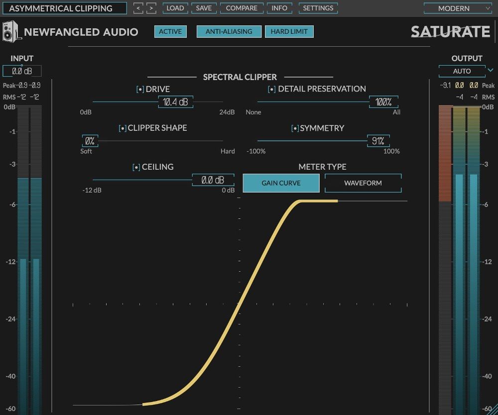 クリップカーブをソフト~ハードまで選択することができ、アナログ感のある歪からバキバキの歪みまで簡単に作ることができます。