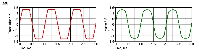 ソフトクリッパーはラインを超えそうな手前で徐々に抑えていくため、丸くて自然な波形になります。